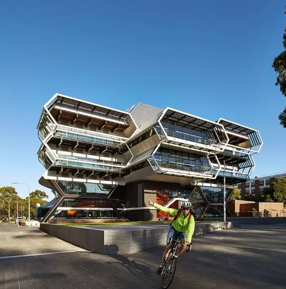 Green Chemical Futures Building creates a green future for chemical research and education. The design, which is inspired by molecular structures, combines chemical education, research and practice in a singular form, with collaboration the central focus of the building. The building is the centrepiece of the science education and research cluster at Monash University Clayton Campus and is a 5 star Greenstar Design and has an As-built Education rating.
