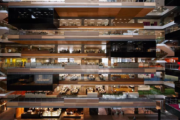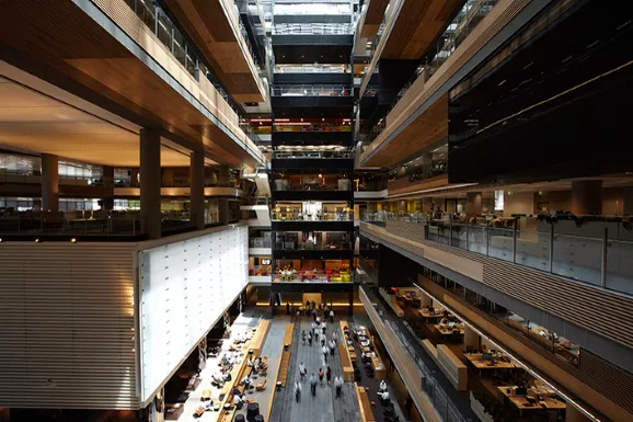 At more than 83,000 sqm of useable space over 13 levels, 833 Collins St was the largest 6 Star Green Star commercial office in Australia when completed. With an atrium that extends through the entire building and plenty of natural light the distinctive interiors the building is a multi-award winner.