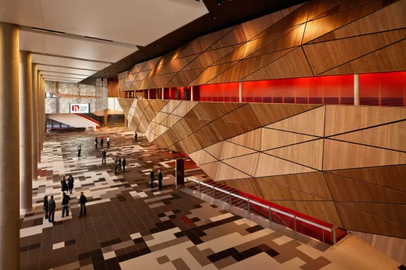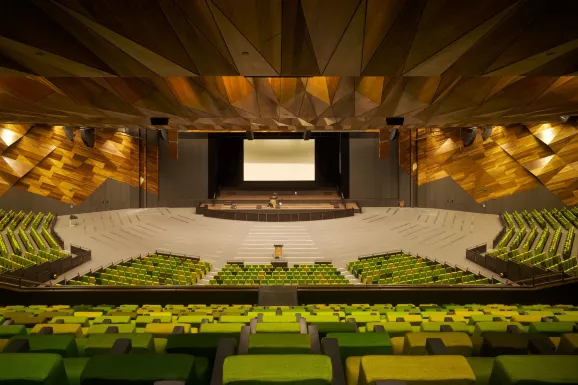 The Melbourne Convention Centre is built on the banks of the Yarra River (Southbank), adjacent to and fully integrated with the existing Melbourne Exhibition Centre. The convention centre can accommodate 5000 delegates within a flexible Plenary Hall. The centre has been awarded a 6 Star Green Star environmental design rating.